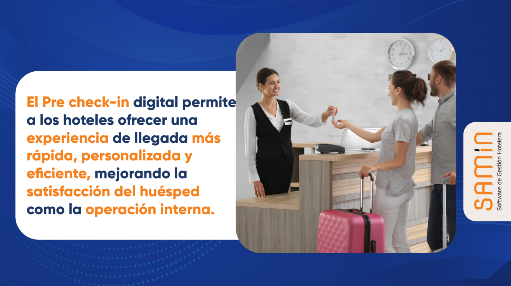 La posibilidad de realizar el pre check-in de manera anticipada reduce significativamente el tiempo de espera al momento del ingreso, eliminando largas filas en momentos de alta demanda y mejorando la eficiencia operativa del equipo de recepción. Además, permite al personal del hotel prepararse mejor para la llegada de cada huésped, conociendo detalles importantes que pueden marcar la diferencia, como necesidades especiales, observaciones previas, o incluso celebraciones importantes. Esto habilita un nivel de personalización mucho más alto y mejora la experiencia del cliente desde el primer contacto físico.